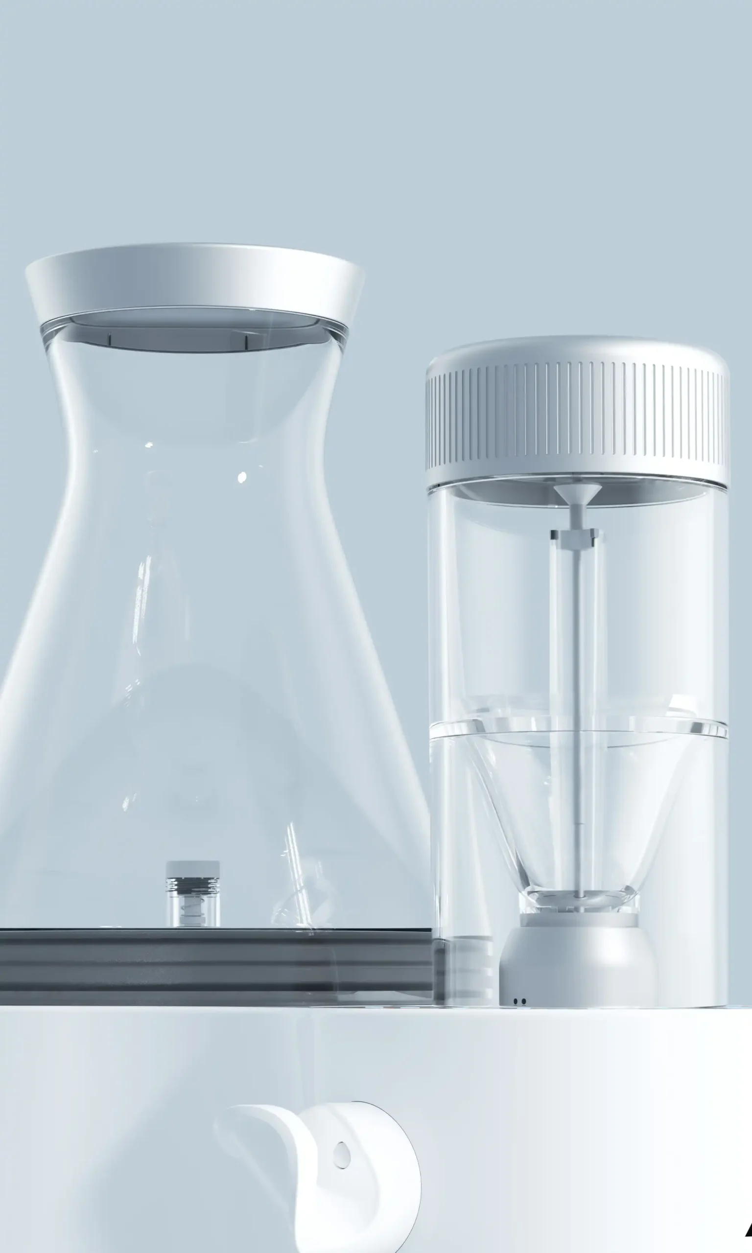 Fully transparent funnel-shaped powder tank