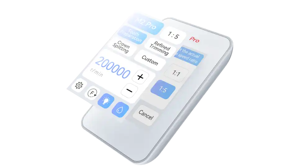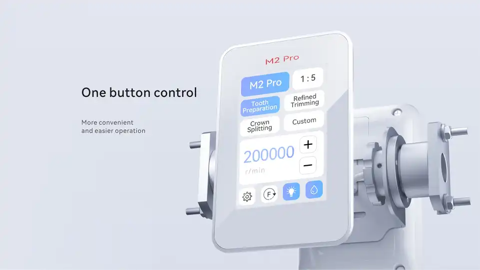 The M2 Pro is an affordable and smart way to switch from turbine to an electric handpiece.  Electric handpieces provide a constant speed and torque that does not change as the load increases. Due to the constant pace, it also creates a smoother and more precise cut, allowing for greater flexibility in preparations. Electric handpieces are growing in popularity each year in the dentistry practice.